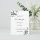 Un elegante fondo blanco en la parte delantera. Decorada con eucalipto y flores de lavanda. Personalice y agregue sus nombres y detalles. Fondo de color lavanda. Sugerencia: Si no desea que se vea como una postal, haga clic en personalizar, vaya a la parte posterior y quite el separador y el sello postal.
