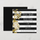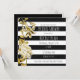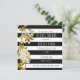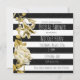 Invitación floral a rayas blancas y negras con tono dorado. Personalice para cualquier evento.