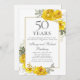 La plantilla de invitación para el 50 aniversario de boda elegante cuenta con un marco dorado y dos arreglos de rosas amarillas. Todo el texto es editable.