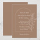 This wedding invitation is shown in a modern arch floral layout with a lovely floral accent.