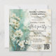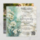Un artista alegremente después de la invitación a la fiesta de bodas con un cuadro de flores blancas sobre mármol. La plantilla de código QR es opcional. En la parte de atrás está tu foto boda favorita. Ideal para una recepción o para una celebración de fugas.