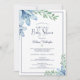 Flores y vegetación de color azul polvoriento y azul marino claras y ventiladas en la parte delantera y un sólido color azul polvoriento en la parte posterior. Contacte con el diseñador si desea modificar este diseño o utilizar otro producto para complementar la decoración y los materiales de la ducha de novia.