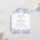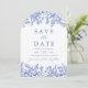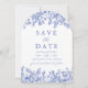 Invitación Floral azul de época moderna y elegante que salva