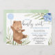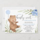 Invitación Floral azul de flores de oso globo de bebé ducha