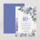 Invitación Floral azul de oro blanco 40 cumpleaños