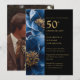 Esta elegante invitación al 50° aniversario de boda, floral y azul, puede ser personalizada con su información en tipografía moderna y una foto especial al revés. Diseñado por Thisisnotme©