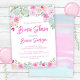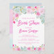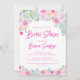 Invitación a la ducha de novias con flores de durazno de durazno de lavanda azul rosa usando un tipo de letra moderno.