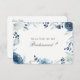 Tarjeta de proposición de dama de honor con marco de disposición floral acuosa en tonos azules. Personalice el texto, el estilo de fuente, el color y el tamaño.