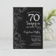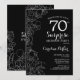 Floral Black White Surprise Invitación a la Fiesta de Cumpleaños 70. Diseño moderno minimalista con acentos botánicos y tipo de letra de escritura tipográfica. Sencilla tarjeta de invitación floral perfecta para una elegante celebración de cumpleaños sorpresa femenina. Se puede personalizar a cualquier edad. Invitaciones Zazzle impresas o una plantilla imprimible digital de descarga instantánea.