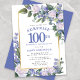Invitación Floral blanca azul 100.ª Fiesta sorpresa de cumple