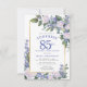 Invitación Floral blanca azul 85º Fiesta sorpresa de cumpleañ