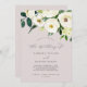 Esta elegante invitación a una boda blanca y floral de ensueño es perfecta para un boda clásico. El moderno diseño vintage presenta un bonito y romántico rosa de marfil y acuarela crema y flores de peonía con hojas de color verde oscuro, vegetación y productos botánicos.