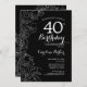 Invitación a la fiesta de cumpleaños 40 de Black White Floral. Diseño moderno minimalista con acentos de dibujos botánicos y tipo de letra de guión tipográfico. Sencilla carta de invitación a la moda, perfecta para una elegante celebración de cumpleaños femenina. Se puede personalizar a cualquier edad. Invitaciones Zazzle impresas o una plantilla imprimible digital de descarga instantánea.