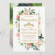 Moderna y elegante, Quinceanera Watercolor rosa Rubor Floral y Gold Photo Invitation Card incluye rosas rosas rosas rosas, flores blancas y una hermosa vegetación botánica. Foto de vuelta.