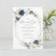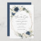 Boda De Oro De La Vegetación Azul De La Marina Floral Guarda La Tarjeta De Fecha. Elegante Blue Flowers Greenery Wedding Save the Date Card