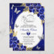 Floral Blue Silver Tiara Butterfly Mis Quinceañera Invitación