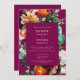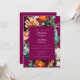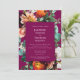 Announce your upcoming nuptials with this breathtaking wedding invitation, showcasing a vibrant botanical garden theme in shades of deep plum, coral, and blush. Intricate floral illustrations, featuring lush greenery and pops of orange and pink blooms, are artfully arranged to frame the wedding details. This design offers a luxurious and natural feel, perfect for couples who love the beauty of nature and seek a dramatic yet elegant statement for their wedding stationery. Let these beautiful blooms set the stage for your unforgettable celebration.