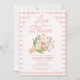 Celebrate the bride-to-be with this romantic “Love Is in Bloom” bridal shower invitation. Featuring a soft pink gingham background, an elegant arched frame, and a hand-painted floral bouquet illustration, this design feels fresh, joyful, and timeless.