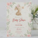 Una bonita ducha floral con un bonito fondo de nene con un adorable conejito de acuarela adornado con una corona floral, con una mariposa colgada en la nariz. Rodeado de flores rosas suaves y hojas verdes en un suave estilo acuarela, esta plantilla es perfecta para invitaciones a la ducha de bebé, decoración de vivero o tarjetas de invitación recién nacida para una niña. Con su suave paleta de colores pastel y su frontera floral femenina, aporta un toque de encanto de primavera y capricho a los diseños de temática de los bebés.