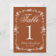 Invitación Floral Burnt Orange Old Money Wedding Table Number