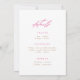Una invitación colorida para un fin de semana de soltera marroquí que incluye un ilustracion acuarela de un camello con carga floral y "fin de semana de soltera" en letra fuchsia rosa moderno de escritura. Editar el itinerario del fin de semana al revés.