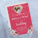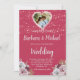 Esta encantadora acuarela Romantic Wood Twinkle Lights Photo Floral Wedding, invitación a la boda, presenta un audaz fondo magenta con flores rosas y blancas, con sólo un toque de morado, resaltado por una foto de la novia y el novio en el doble corazón. Los toques de caligrafía son un acompañamiento perfecto de las hermosas flores. Una encantadora elección de diseño para marcar el tono de la celebración de su boda. Para cualquier pregunta de diseño o personalización adicional y/o elementos coincidentes, sólo tiene que enviar un correo electrónico a charmdesignstudio@rcn.com y estaremos encantados de ayudarle. Vea el enlace de la colección en esta página para ver todos los elementos coincidentes de este hermoso diseño.