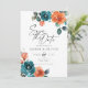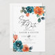 Invitación Floral de acuarela Verde azulada Naranja quemada G