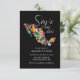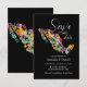 Una invitación colorida para guardar la fecha con un diseño de arte floral de jardín de México.