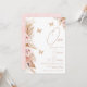 Invitación de cumpleaños 1.ª Floral y mariposas de Boho rosa Esta invitación de cumpleaños para chicas dulces incluye una decoración floral bohemia en tonos rosas, ruidosos y naturales y tres mariposas rosa purpurina de oro.