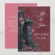 Esta ilustración de Castillo de Princesa Gótico de Dark Academia es un centro de mesa impresionante para una boda de cuento de hadas oscuro. Situada contra un fondo granate profundo y texturizado que imita la apariencia del terciopelo envejecido, la imponente arquitectura de piedra de color gris carbón se siente antigua y regia. Deslizándose por las torretas y floreciendo en la base de la fortaleza hay racimos de Rosas Inglesas rosadas polvorientas y delicados Flores de Cerezo que coinciden, proporcionando un contraste suave y romántico a las afiladas torres góticas. Con el castillo colocado elegantemente a la izquierda, el diseño deja un espacio amplio y sombrío a la derecha, perfectamente adecuado para caligrafía en oro o plata.