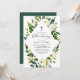 Invitación a bautizar con un tema floral blanco. Cuenta con un marco floral de diamante acuático con flores blancas, follaje verde y cruz. Esta invitación floral es perfecta para los bautizos de invierno y primavera. Personalice agregando sus propios detalles.