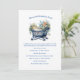 Anuncie la llegada de su principito con estilo con nuestra invitación a la ceremonia de cuna de bebé. Decorada con un encantador ilustracion acuático de una cuna adornada con flores azules suaves, esta invitación marca el tono perfecto para su alegre celebración. Reúne a sus seres queridos y aprecie los preciados momentos en que presenta a su bebé al mundo.