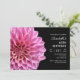 Honre a una mujer especial con esta elegante y femenina invitación a la fiesta de cumpleaños. Este diseño cuenta con una flor de dahlia rosa. Sencillo y moderno. Cada texto es personalizable para sus necesidades.