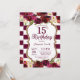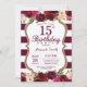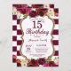 Invitación floral de la fiesta de cumpleaños de Borgoña décimo quinta para las mujeres. El rojo de Borgoña y la fiesta de cumpleaños del oro invitan. Purpurina del oro. Flor floral de la acuarela de Borgoña. Borgoña y rayas blancas. décimotercero décimo quinto décimosexto décimo octavo vigésimo 21ro trigésimo 40.o 50.o 60.o 70.o 80.o 90.o 100o, cuaesquiera edades. Digitaces imprimibles. Para el arreglo para requisitos particulares adicional, haga clic por favor el "personalizar él" botón y utilice nuestra herramienta de diseño para modificar esta plantilla.