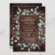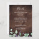 Esta rústica casa floral de madera de lavanda en una sola invitación a la boda es perfecta para un boda al aire libre sencillo y elegante. El diseño floral incluye hojas de eucaliptos acuáticas y vegetación con brotes de flores violetas sobre fondo de madera falsa. Guarde el papel incluyendo los detalles en la parte posterior de la invitación a la boda en lugar de en una tarjeta separada. Incluya también la información de RSVP si su invitado responderá electrónicamente (opcional).