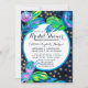 Se trata de una majestuosa y artística boda con ducha de novia para su evento especial. Se trata de una mariposa, flor y hojas tropicales pintadas a mano y de colores vivos, verde turquesa, violeta, rosa neón y amarillo neón, que rodean un borde circular azul acuático sobre un cielo nocturno azul marino oscuro. En el fondo hay hermosas luciérnagas amarillas brillantes para iluminar y brillar contra el cielo. ¡Es elegante, moderno, artístico, bonito y único! ***NOTA DE DISEÑO IMPORTANTE: Para cualquier solicitud de diseño personalizado, como solicitudes de productos coincidentes, cambios de color, cambios de posición o cualquier otra solicitud de cambio, haga clic en el botón "CONTACTO" o envíe un correo electrónico al diseñador directamente a lafemme.art@gmail.com. Incluso puede enviarle un correo electrónico solicitando un diseño completamente personalizado y nuevo.