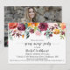 Esta invitación incluye una acuarela de color burdeos rosa naranja de color rosa oscuro con un arreglo floral. Vístelo con su propia imagen y guau a su invitado. Atención: En la parte delantera, no se puede borrar, editar ni cambiar la redacción de "alejarse fiesta" y "el ramo de acuarela" y la caja sombreada con ramo de flores en la parte posterior. Puedes reemplazar las fotos de la foto con las tuyas. Puedes personalizar la invitación como quieras.