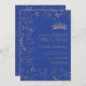 Invitación Floral de oro azul real moderno Tiara QR Quinceañe