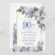 Invitación Floral de oro blanco azul 90 cumpleaños