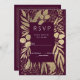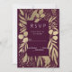 Este espléndido diseño de invitación a la boda incluye encantadoras invitaciones románticas borgoñas y follaje dorado floral Wedding RSVP, perfectas para cualquier ceremonia elegante y sofisticada. Esta florida florida dorada es ideal para una pareja moderna y elegante. Personalizar este diseño con su mensaje e información personalizada. Todos los diseños están impresos.