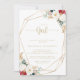 Esta floral clásica de oro es una invitación a la ducha de bebé chica, perfecta para una ducha rústica o para rociar. El diseño se compone de acuarelas blancas, burdeos y flores doradas y bayas de vegetación verde dispuestas en elegantes ramos.