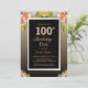 Invitación a la fiesta de cumpleaños 100 con flores de color negro y oro.