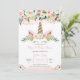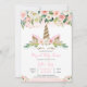 Invitación Floral de oro rosa Unicornio Baby Shower
