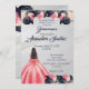Invitación a Quinceanera floral con rayas de oro rosado y azul
