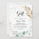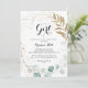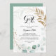 Esta floral rústica de oro es una invitación a la ducha de bebé chica, perfecta para una simple ducha o rociada. Este diseño artístico presenta un follaje dorado a mano floral y acuarela de eucalipto verde, bellamente acondicionado en un marco geométrico elegante.