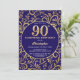 Sorpresa 90 aniversario Nacimiento de la Marina Azul y Oro Patrón Floral Invitación de cumpleaños. Para una mayor personalización, haga clic en el botón "Personalizar" y utilice nuestra herramienta de diseño para modificar esta plantilla.