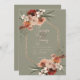 Invitación Floral de otoño verde de boho roya y seda neutra