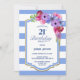 Invitación Floral de rayas azules 21ª Fiesta de cumpleaños