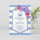 Invitación Floral de rayas azules 80ª fiesta de cumpleaños