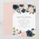 Invitación Floral de Rubor Romántica y Dulce Naval Quinceañer